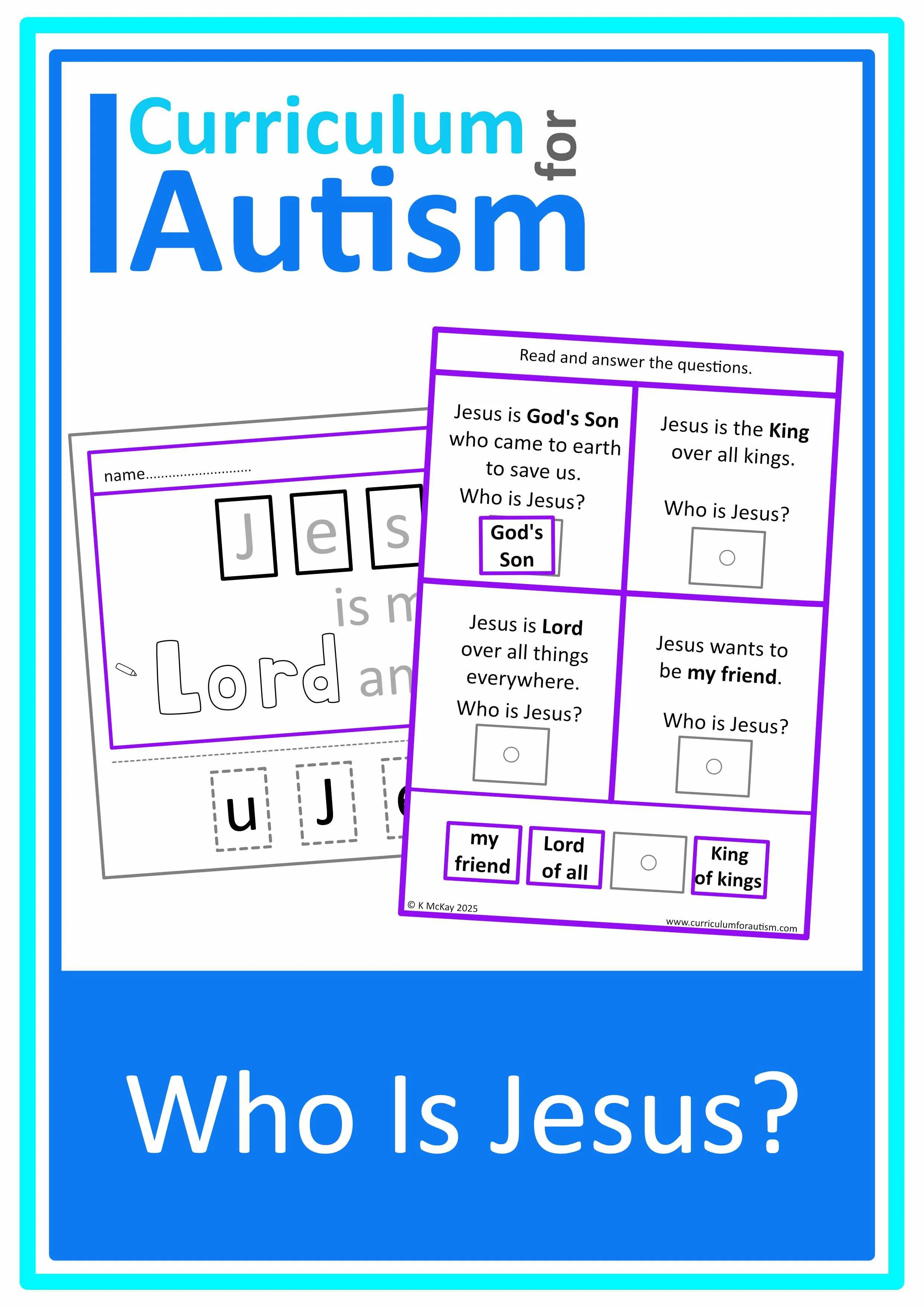Your purchase is for single classroom/home/church use only. This product is copyrighted by Curriculum For Autism and may not be shared online in any form.